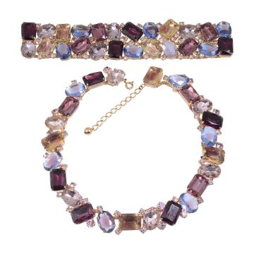 set with large bi-coloured paste gems, with a matching double row bracelet with a push clasp setting