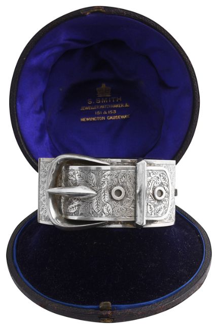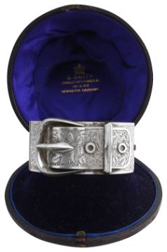 with chased foliate design to centre section, contained within a hoof leather fitted case