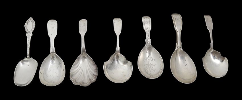 Seven Victorian silver caddy spoons