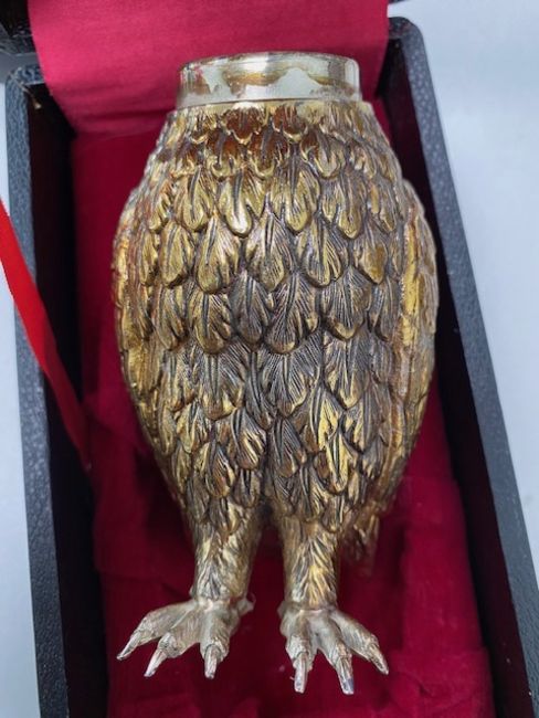 A silver plated novelty owl caster