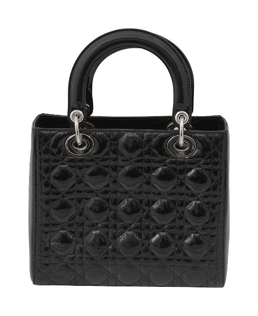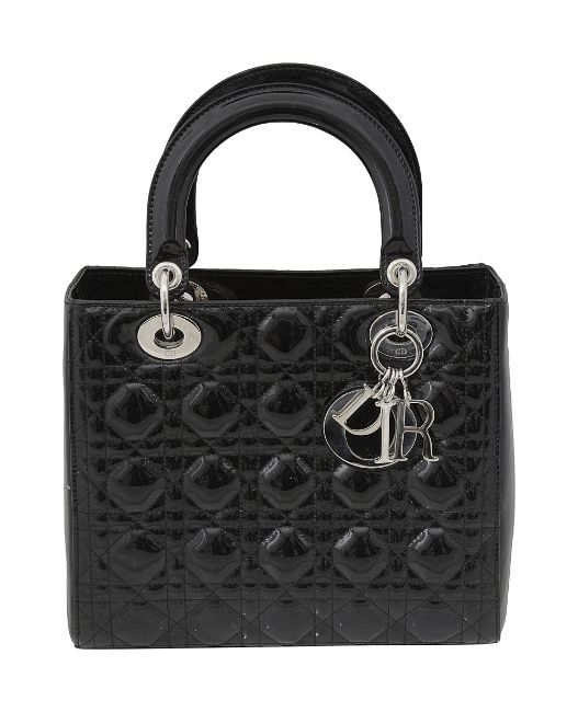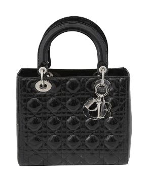 A Christian Dior black patent leather medium Lady Dior bag