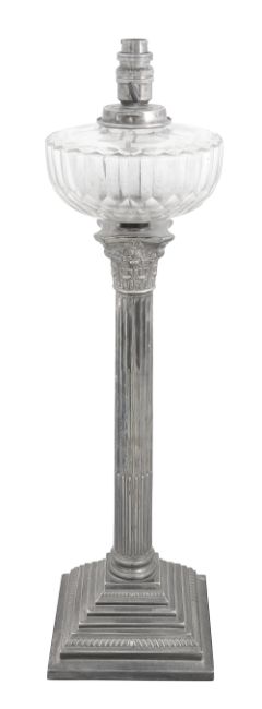 A late Victorian electroplated Corinthian column oil lamp