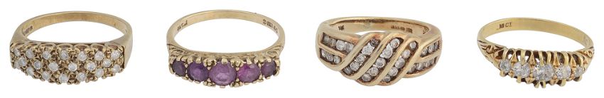 A group of four gem-set rings