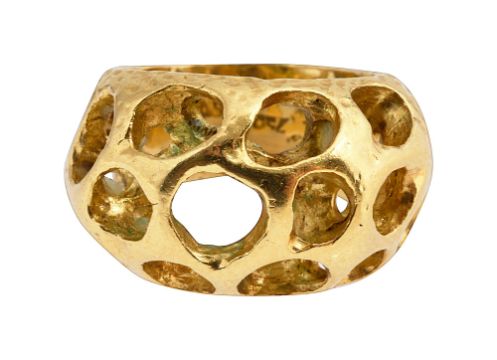 An 18ct gold open-work ringa fashionable piece, with a pierced open work design, stamped ‘750’ ring size F, total approx. weight 9.2gCondition: