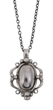 An ornate silver oval pedant designed by Georg Jensen, 1989