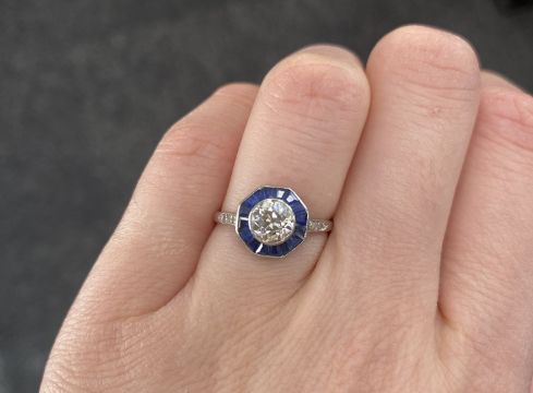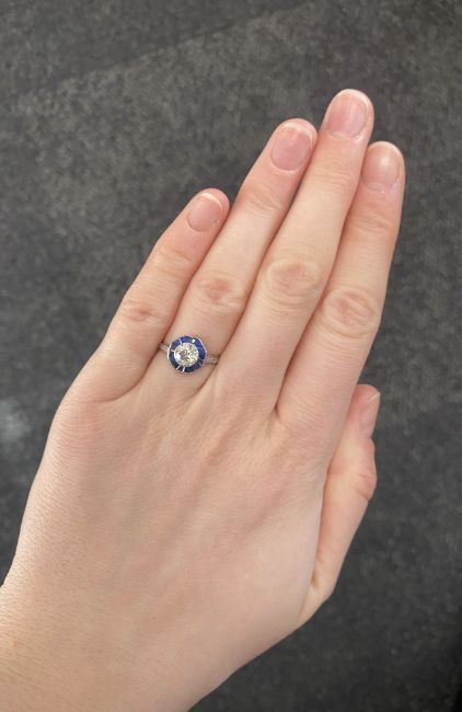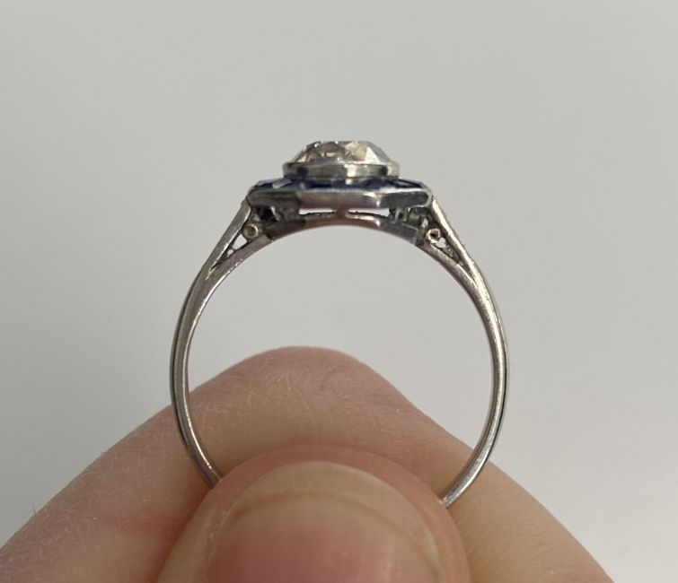 An Art Deco diamond and sapphire set ring