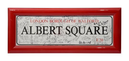 An Eastenders London Borough of Walford street sign signed by the cast c.2000