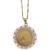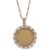 veiled head facing left, George slaying the dragon to rev, set within a loose wire-work mount, suspended on a 9ct gold fine fetter and three link chain, stamped with hallmarks to tag