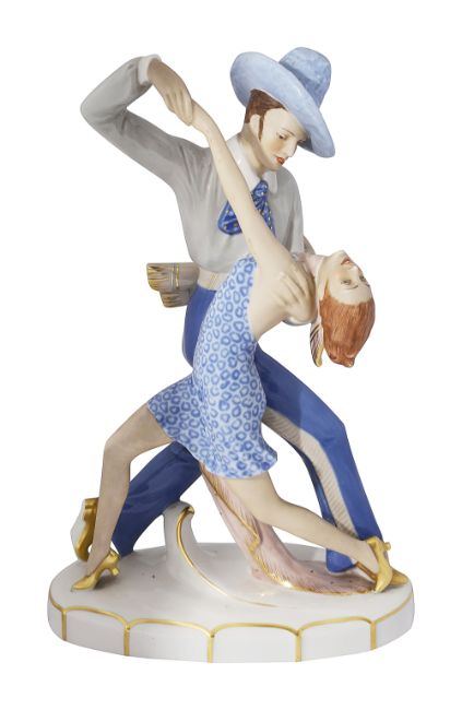 A Royal Dux Art Deco porcelain figure group 'Tango Dancers' c.1930
