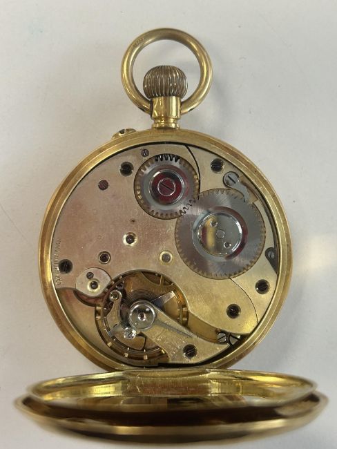 A George V open faced 9ct gold key less pocket watch