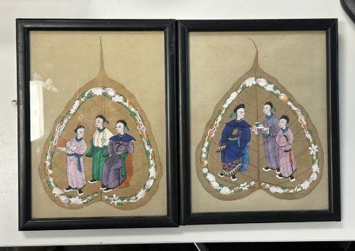 19th century Chinese School. Peepal leaf and pith/rice paper paintings
