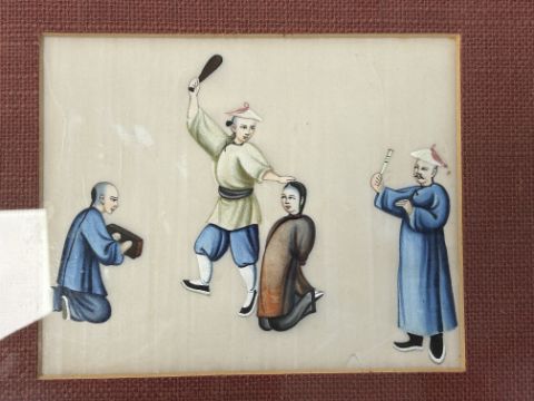 Condition: Peepal Leaf paintigns in good condition. torture scenes and daily life paintings are in fair condition, but one with marginal tears Pleasure boat with scuffs, light scratches and occasional impressed marks. View of Bocca tigris with tear to sky. All four paintings of courtiers with condition issues, splits tears, stains and losses