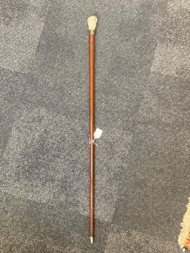 A French novelty walking cane c.1900the Japanese carved ivory pommel in the form of a turtle climbing on a log with frogs and toad, silver collar with French control marks and makers mark, rosewood shaftlength 93.8cm. Condition: Small chip to mouth of one frog, short hairline to cane from collar approx. 6cm.IMPORTANT NOTEThis item has been registered as exempt from the UK Ivory Act 2018. Ivory declaration submission number reference: 89PUE6LP