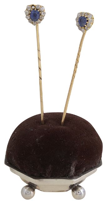 A pair of late 19th century sapphire and diamond-set stick pins