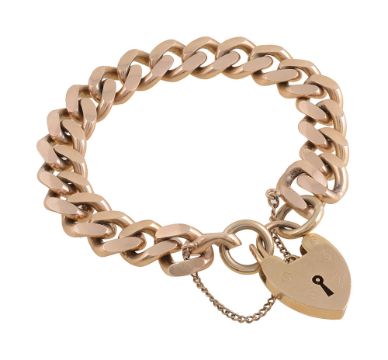 stamped to links "375", with heart padlock clasp, stamped with hallmarks