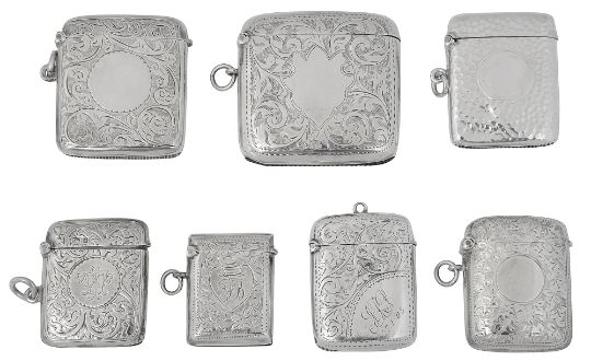 Seven Edwardian silver vesta cases