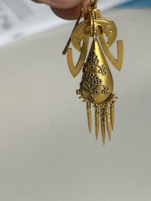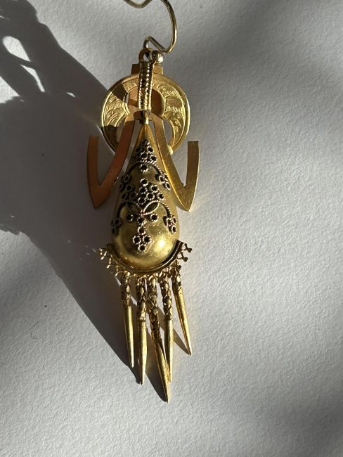 ear pendant length 6.6cm, 5.6g; coin length 2.9cm, 3.5g