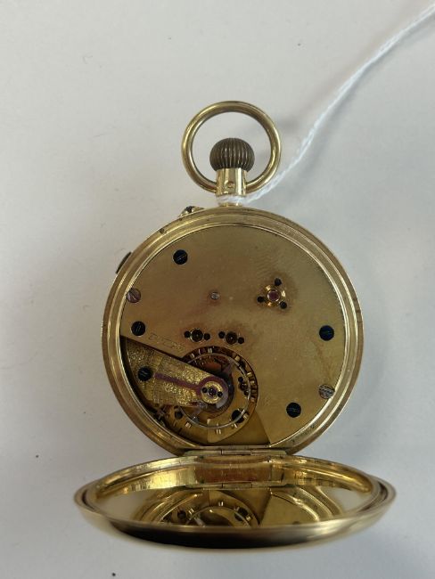 An 18ct gold open faced keyless pocket watch