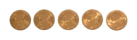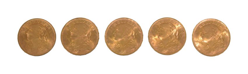Switzerland. Five gold 20 francs, all 1935