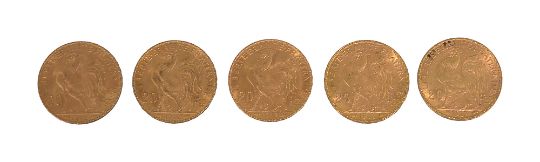 France. Third Republic, Five gold 20 Francs, 1912