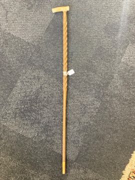 the ivory handle engraved with a narwhal, half spiral twist carved wood shaft with horn ferrule