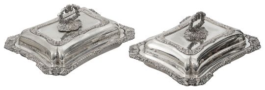 A pair of Edwardian electroplate on copper entree dishes and covers by Walker and Hall