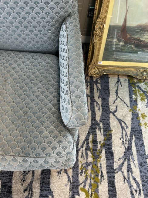 An Edwardian upholstered sofa in the manner of Howard and Sons