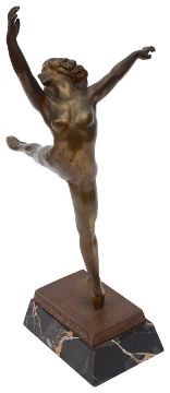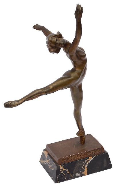 "La Danseuse Nattova", bronze, the rectangular base inscribed "S.Yourievitch Sculp", black veined marble plinth base