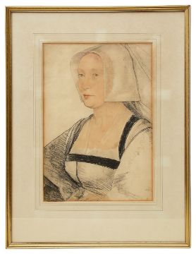 "An unidentified woman c. 1526-8", lithograph with hand colouring on laid paper, mounted and framed