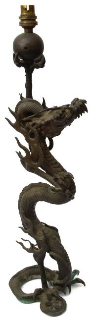 A Japanese Meiji period patinated bronze table lamp