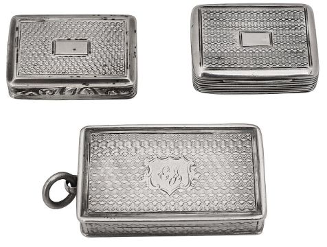 Three George IV/William IV and early Victorian engine turned silver vinaigrettes
