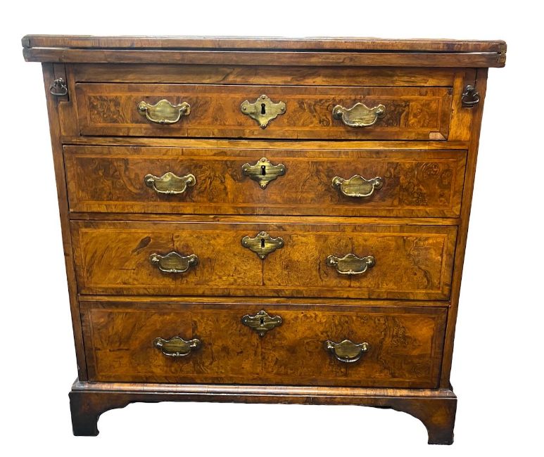 A George I style figured walnut and burr walnut bachelors chest of drawers