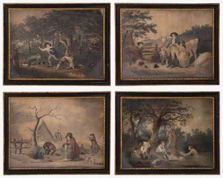 After George Morland. Four late 18th century stipple engravings with hand colouring