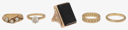 ring sizes M, L, L, O/P, N, total approx. weight (excl. unmarked ring) 23.4g