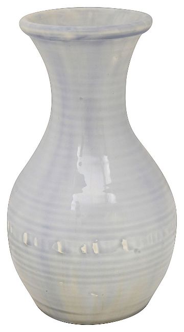 of ribbed baluster form, pale blue/green glaze. impressed factory mark with facsimile signature
