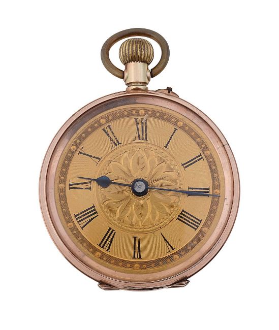 the dial with an engine turned leafy centre with outer Roman numerals,