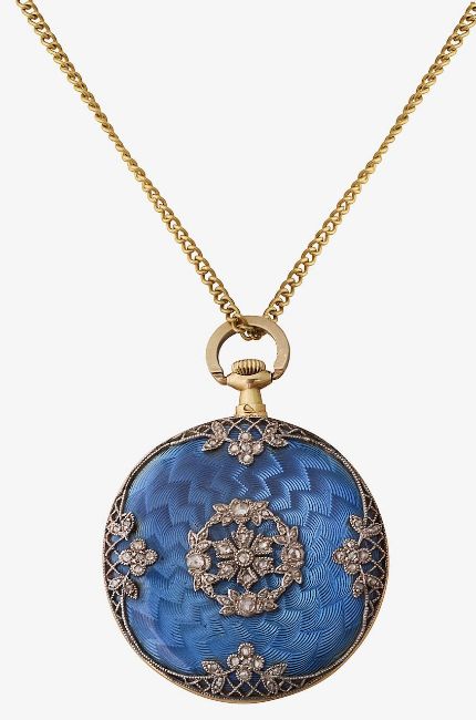 A Continental blue guilloche enamel and diamond pendant keyless time piece