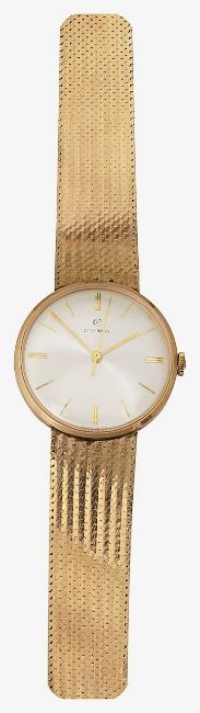 Condition: The fitted case with broken hinges. A few surface scratches to the glass, the strap slightly bent. In working condition but no guarantee given to the movement.
