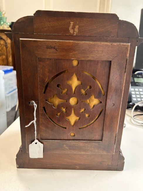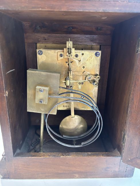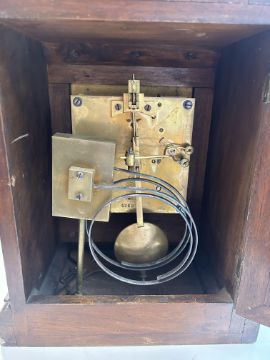 Condition: Pendulum, winding key present. Movement winds but strike does not. No guarantee can be offered as to the full working order of this clock. Overall in fair condition, small section of wear to veneer on top of case