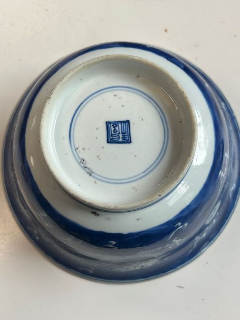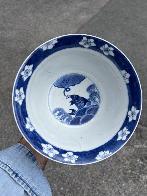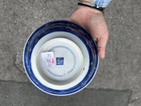 Condition: The sides with two old but stable hairlines travelling down the sides, The rim with three fleabite chips and a larger chip
