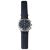 circular blue dial with luminous white Arabic numerals, minute scale three sub dials for seconds dial, thirty minute and 12 hour registers,