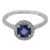 central round brilliant cut sapphire, claw-set above a diamond mount, to diamond pave-set shoulders, to white metal shank, stamped "750 DIA 0.30", within a Mappin & Webb ring box
