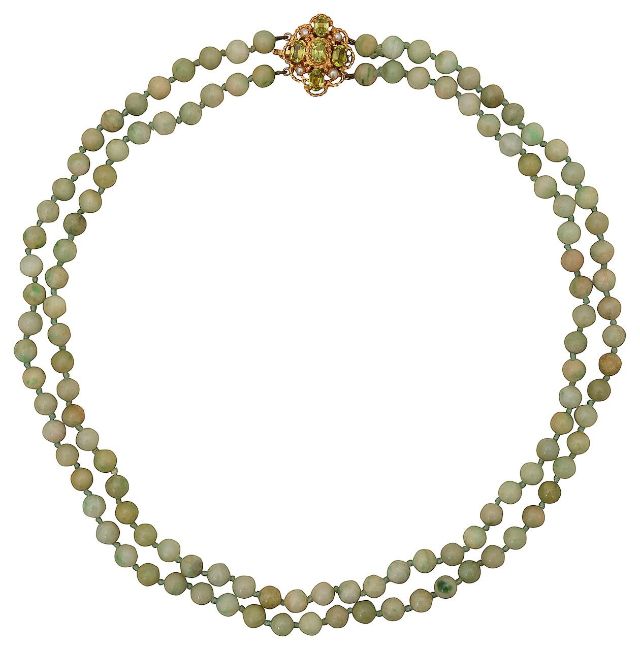 of uniform size, with 9ct gold peridot and pearl clasp, in a rope-twist open work design