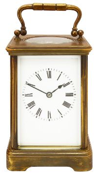 Condition: Winds, ticks and runs and strike function however no guarantee cane be offered as to the full working order. Gilt brass rubbed. Scratch marks to gilt. Wear and scuffing to leather but with strap absent. Platform escapement appears original
