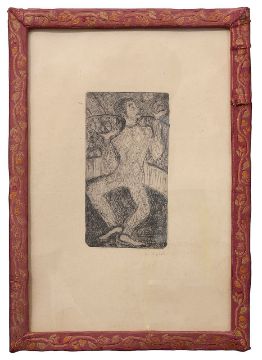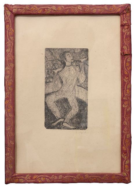 'A juggling clown', drypoint etching, signed in pencil to margin N. Orioli, framed