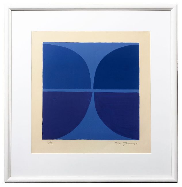"Blues", lithograph, signed bottom right, dated 69, numbered 53/75 bottom left, framed and mounted