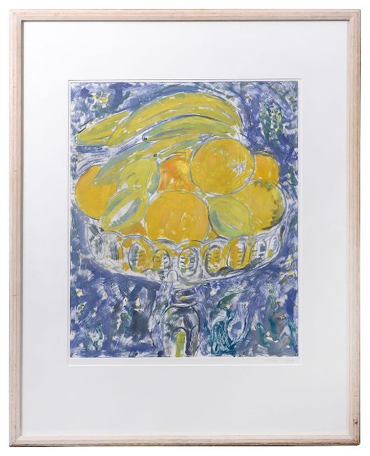 "Fruits in a Compotiere", colour offset drawing, signed bottom right, dated 1989, framed and mounted, label verso