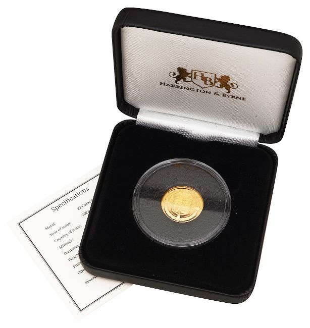Queen Elizabeth with laurel facing left re Heraldic design, in a clear perspex coin case in a fitted case with outer card sleeve and certificate issued by Harrington & Byrne