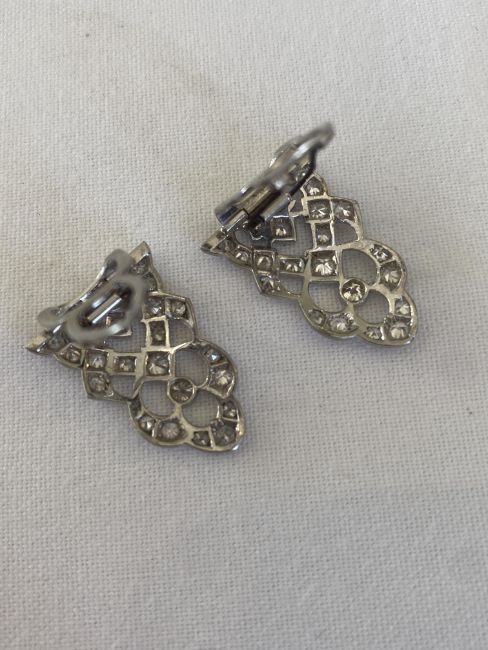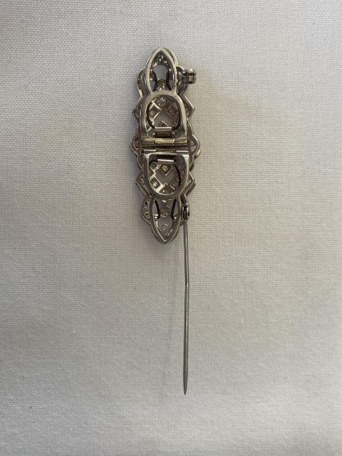 of openwork geometric design, set brilliant-cut and single-cut diamonds