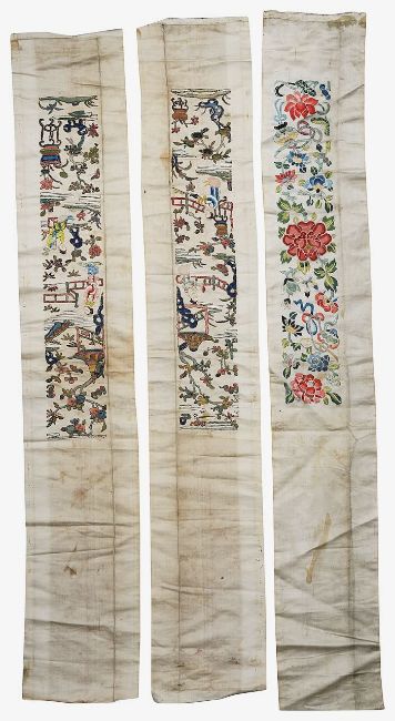 A pair of Chinese embroidered silk sleeve cuffs